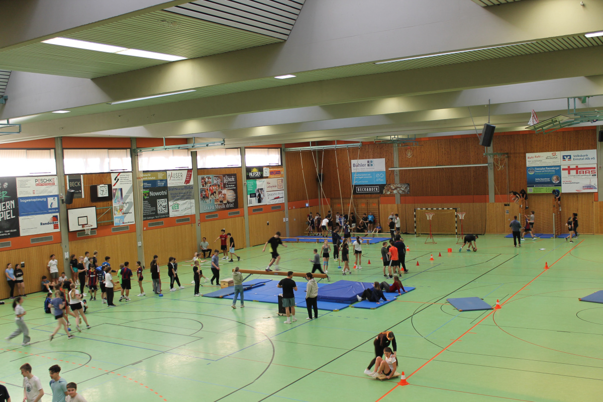 Am diesjährigen Sporttag der Sekundarstufe durchliefen die Schülerinnen und Schüler zahlreiche abwechslungsreiche Stationen. Dabei stellten sie ihre Geschicklichkeit, Ausdauer, Kraft und ihr Durchhaltevermögen unter Beweis. Mit viel Einsatz und guter Stimmung meisterten alle die sportlichen Herausforderungen.