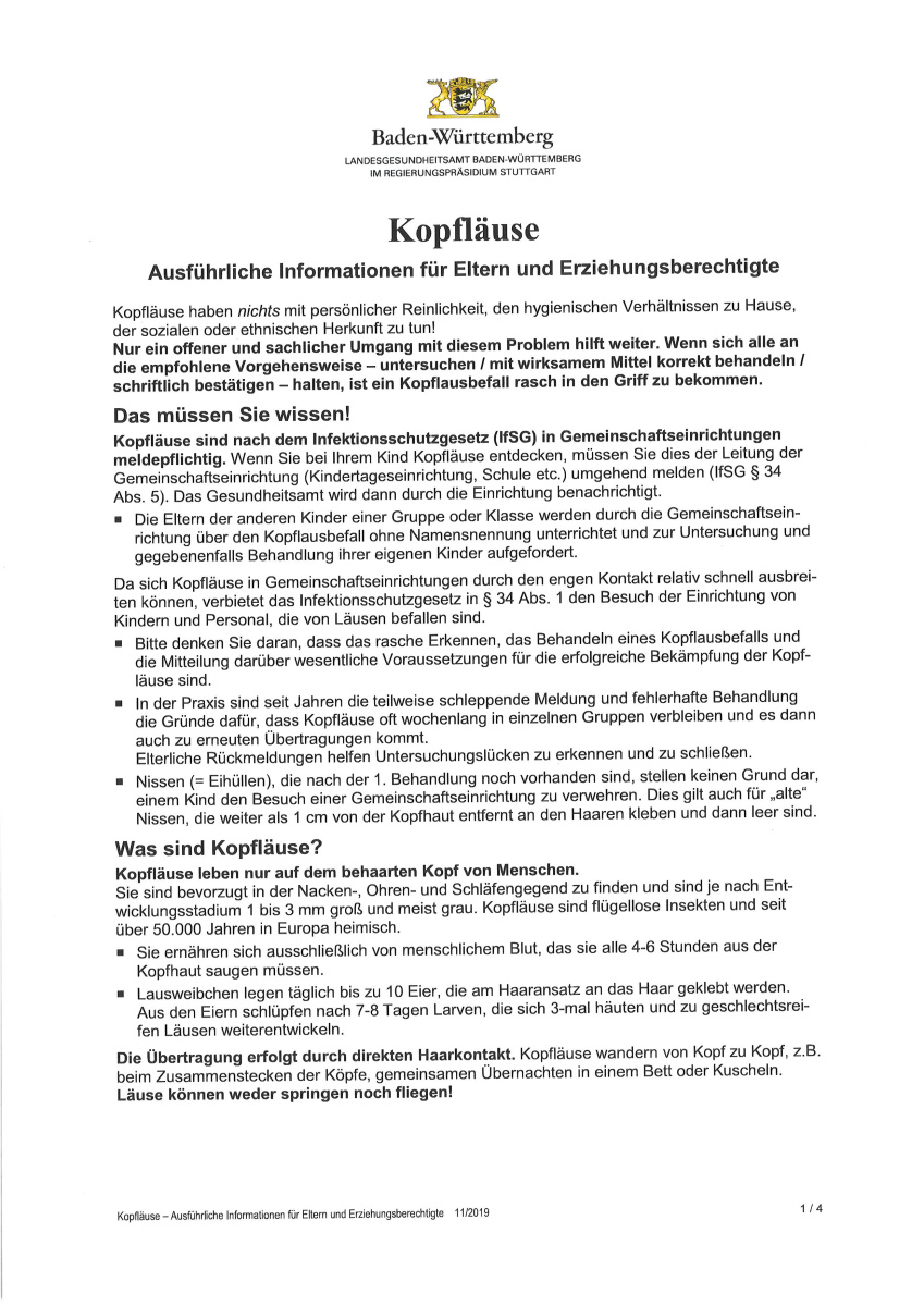 derzeit haben wir vermehrt Kopfläuse in verschiedenen Klassen der Grund- und Sekundarstufe.